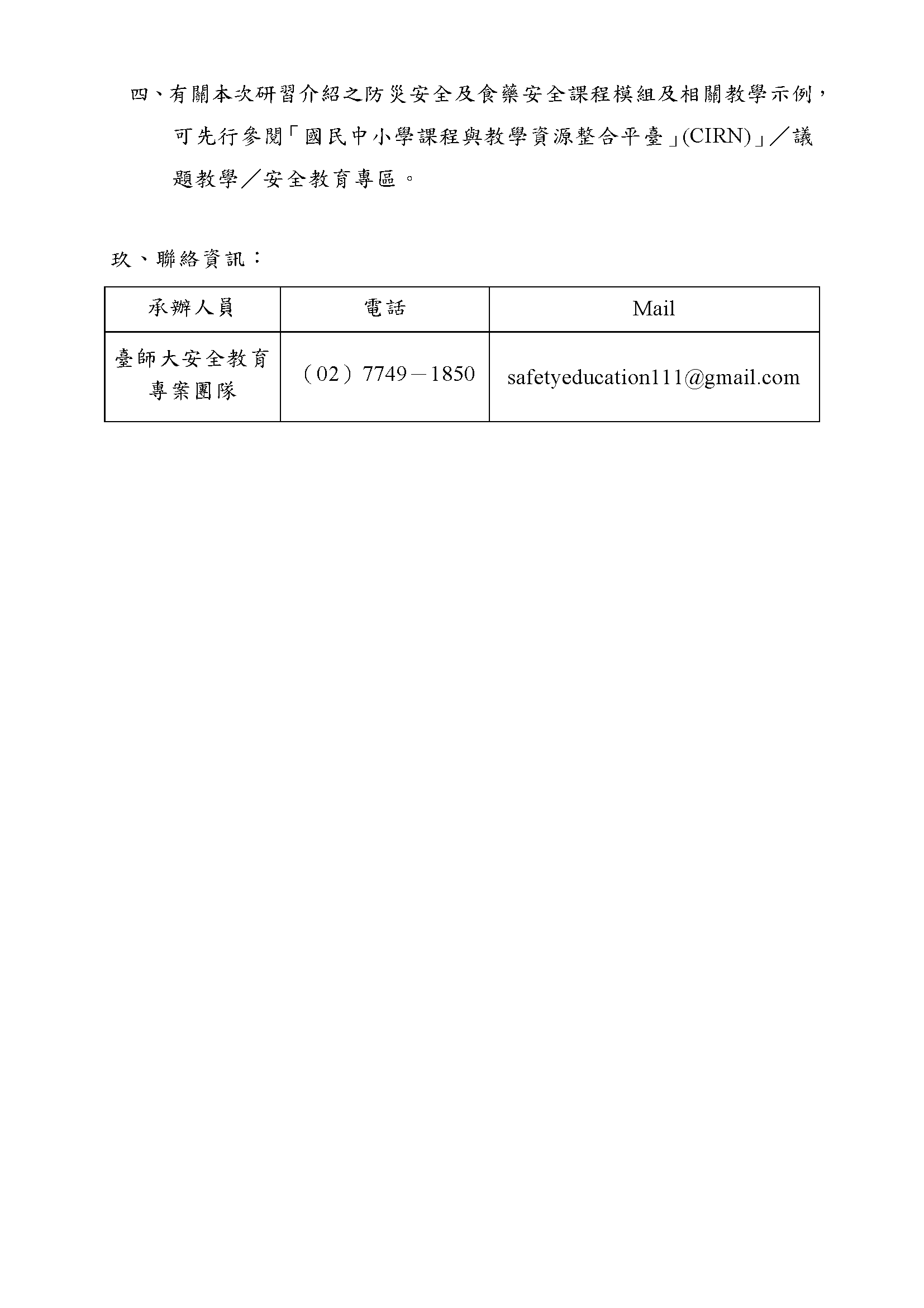 標題 [轉知研習資訊]國民中小學安全教育研習計畫