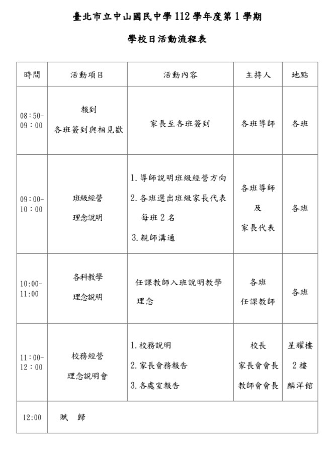 標題 本校訂於112年9月16日(六)上午辦理學校日活動,歡迎家長踴躍參加!