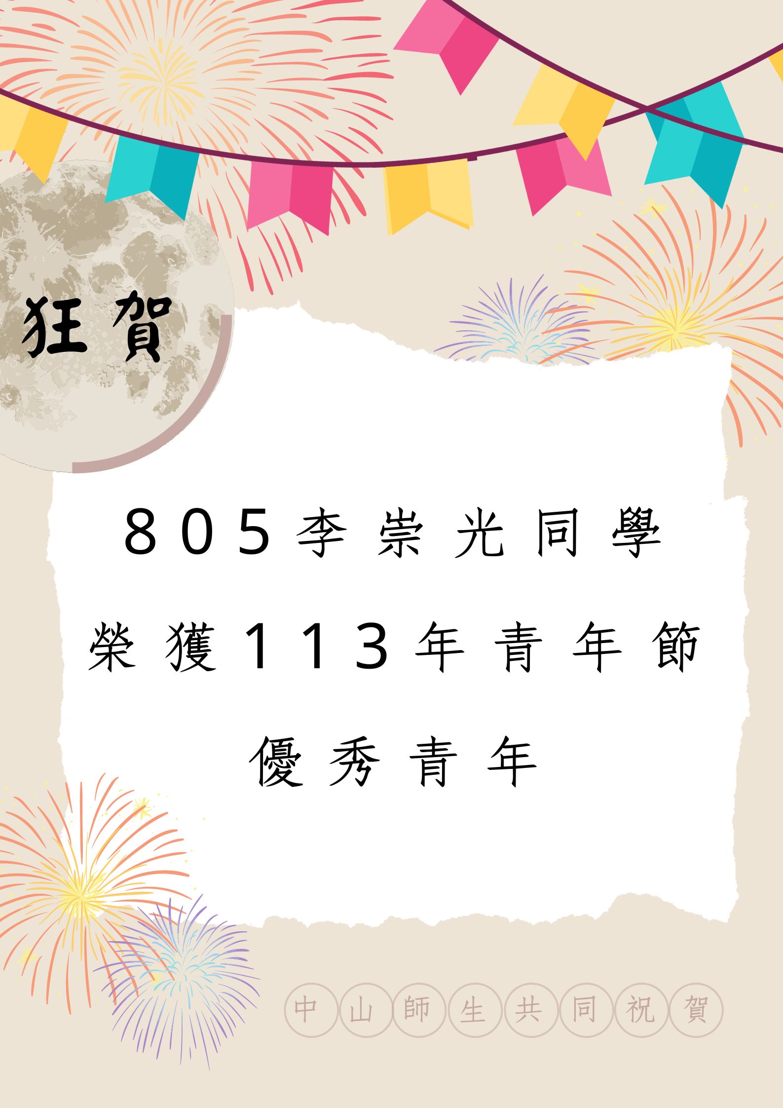 標題 賀805李崇光同學榮獲113年青年節優秀青年